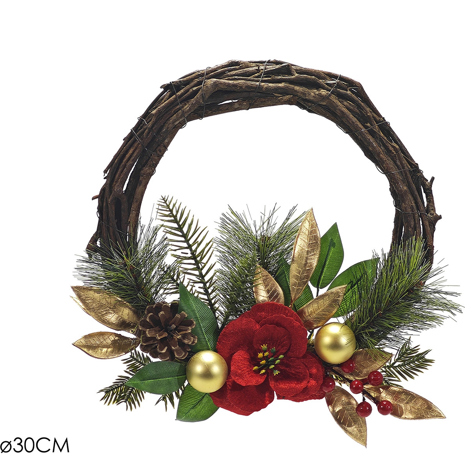 Χριστουγεννιάτικο Στεφάνι Με Κουκουνάρια Και Berries Κόκκινο/Χρυσό Φ30cm